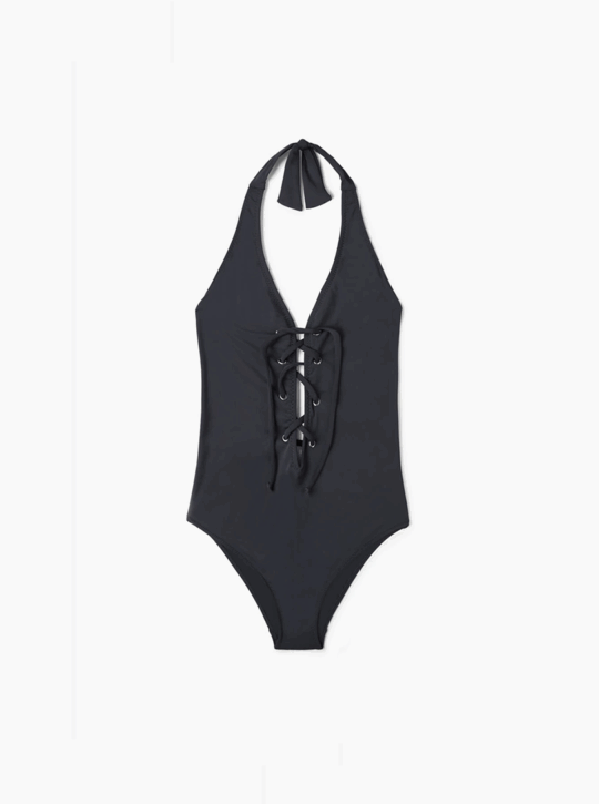 This swimsuit is gonna get you a lot of attention, just saying. The Two Strap Swimsuit by Houdini is made in black stretchy fabric and features.